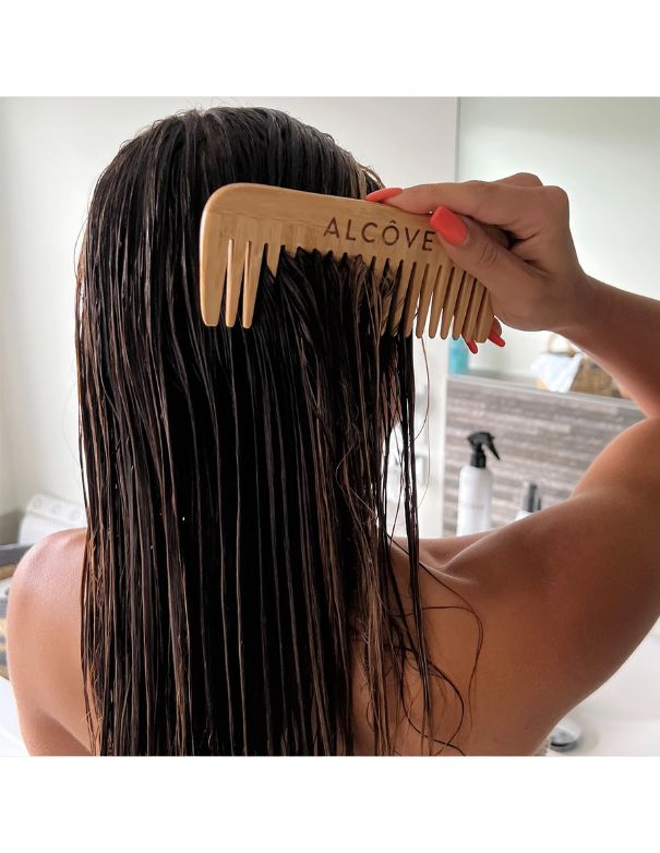 - Après votre routine de lavage, vaporisez des mi-longueurs jusqu'aux pointes sur cheveux humides avant de les brosser ou de les peigner.