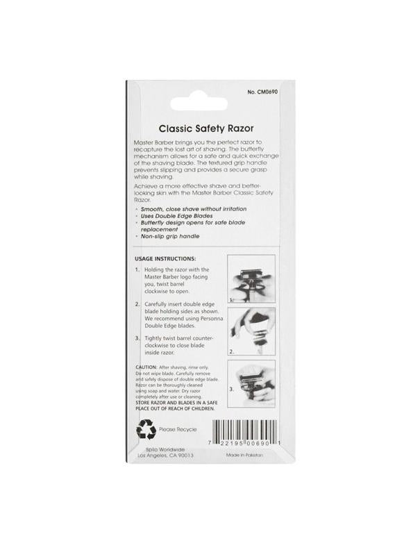 - Construction sûre et durable : Vous êtes là pour vous raser, pas pour vous couper les mains ! Ce rasoir Master Barber Classic est conçu pour la sécurité. Il est doté d'un système papillon pour un changement de lame simple et sûr. Nickelé pour éviter la corrosion et l'usure !