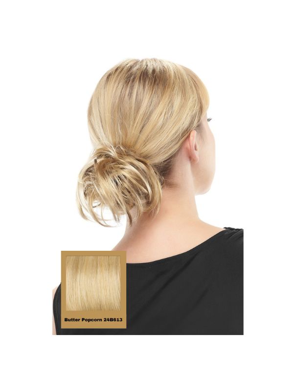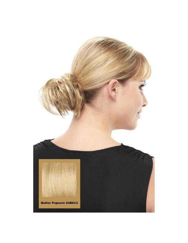 Funky est un chignon idéal pour tous les jours, qui se fixe à l'aide d'un élastique autour de votre queue de cheval. Ce chignon mi-long donne à votre coiffure un look décontracté et crêpé.