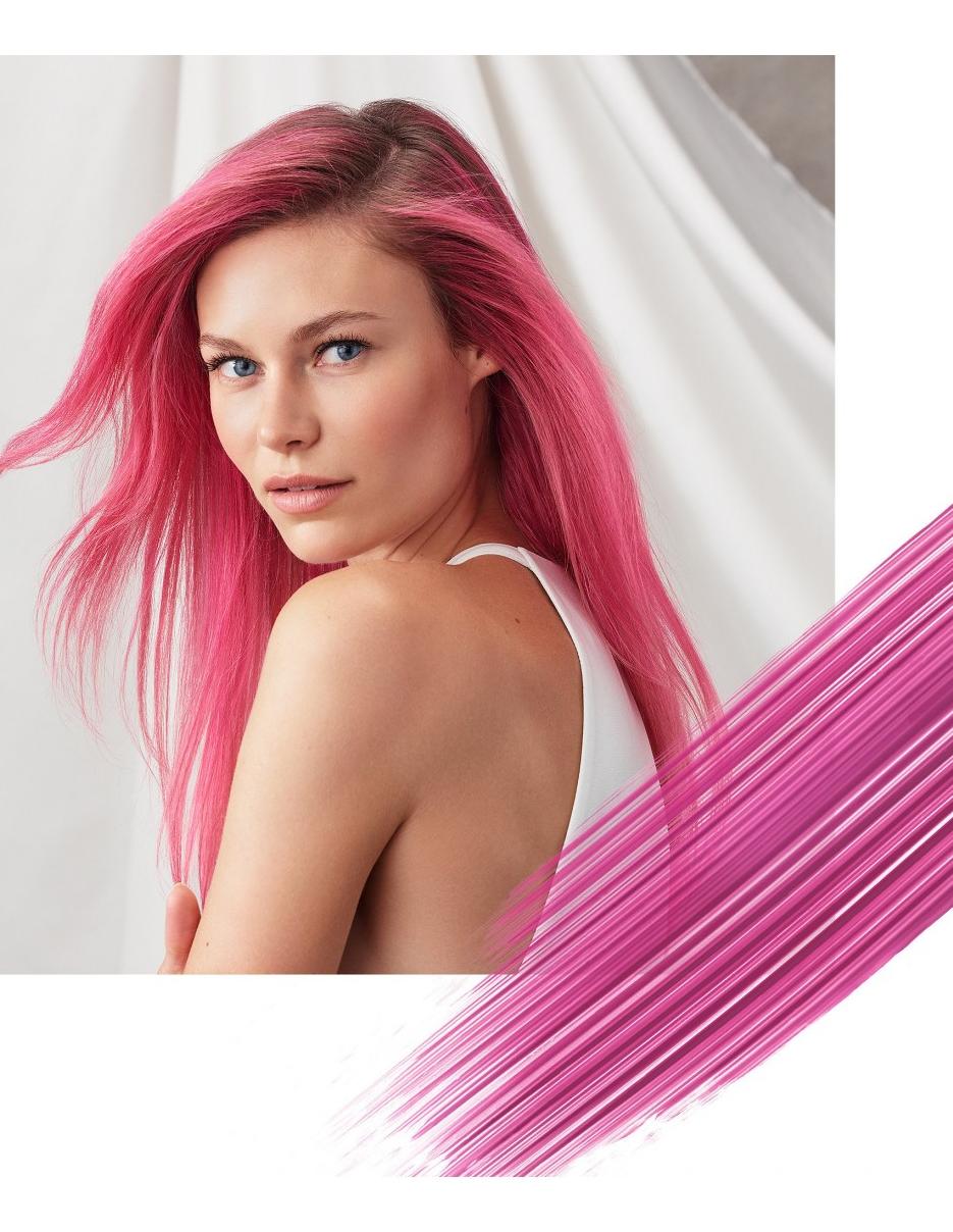 Hibiscus est un rose floral éclatant, idéal pour les cheveux blond clair à blond moyen. Grâce à son éclat exceptionnel, il peut durer plus longtemps que les autres nuances de la collection. Les résultats varient selon l'état initial et la nuance de cheveux.
