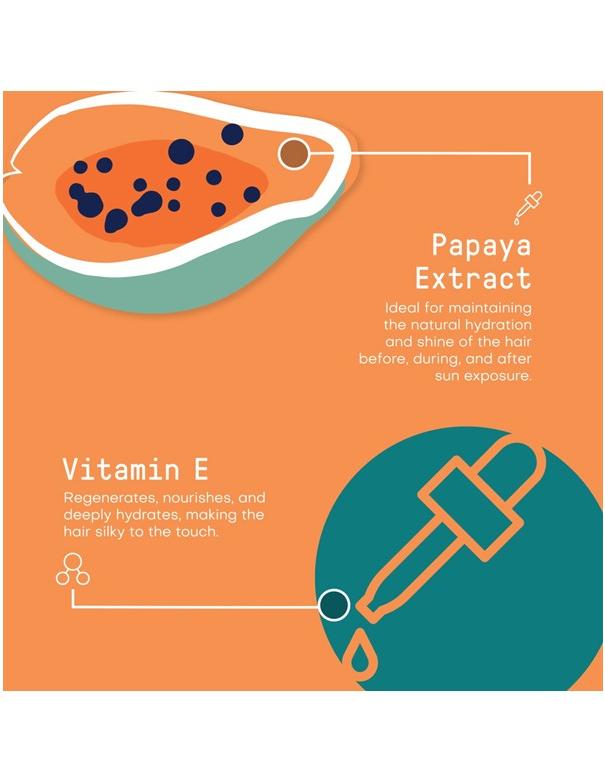 - Enrichi en extrait de papaye et en vitamine E, il régénère, nourrit et hydrate en profondeur, rendant les cheveux soyeux au toucher.