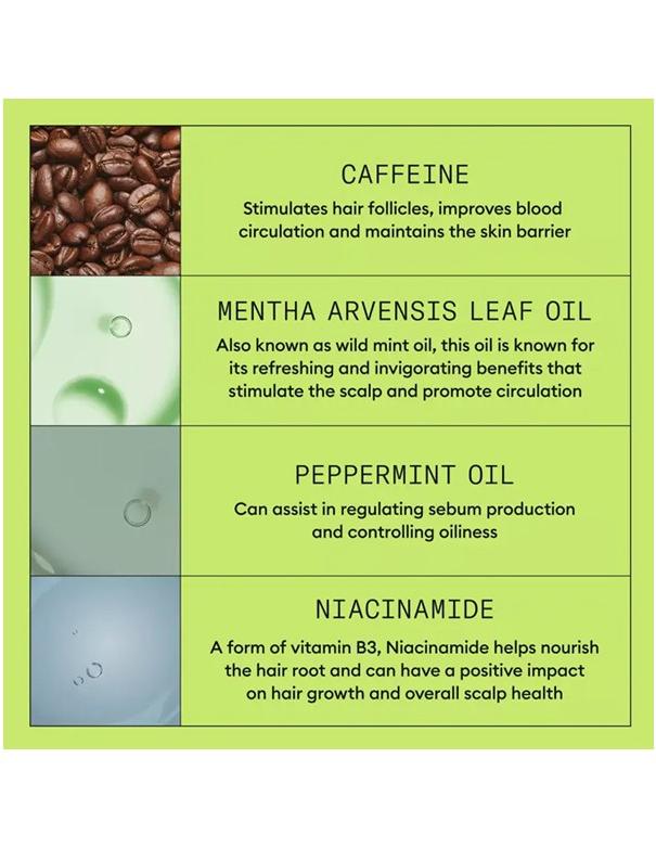Ingrédients principaux : Formulé avec un puissant mélange de niacinamide, de biotine et de caféine pour aider à nourrir la racine des cheveux, stimuler les follicules pileux et renforcer les cheveux.