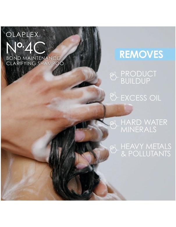 Le shampooing clarifiant N°4C Bond Maintenance®, enrichi de la technologie brevetée OLAPLEX Bond Building Technology™, est notre système clarifiant exclusif à large spectre. Il élimine les impuretés nocives de la surface des cheveux sans les décaper ni les dessécher.