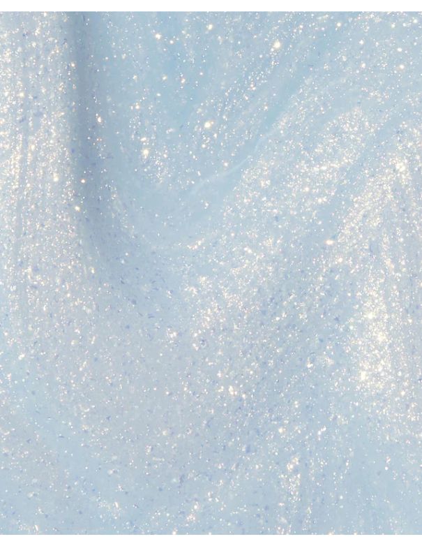 Un vernis à ongles bleu ciel scintillant et transparent, agréable à porter.