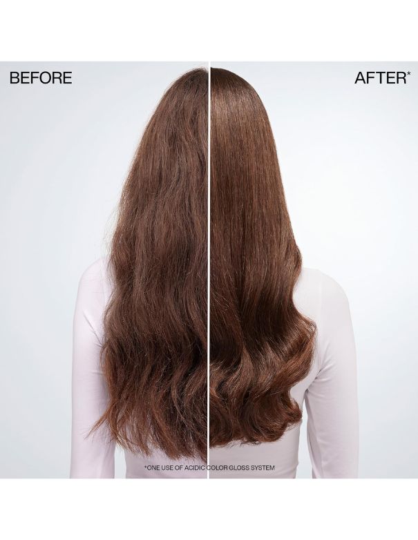 Appliquer le soin sans rinçage Acidic Color Gloss Protection Thermique sur cheveux propres et humides. Laisser agir. Ne pas rincer. Utiliser en système complet avec le shampoing Acidic Color Gloss, le soin Activated Glass Gloss et l'après-shampoing.