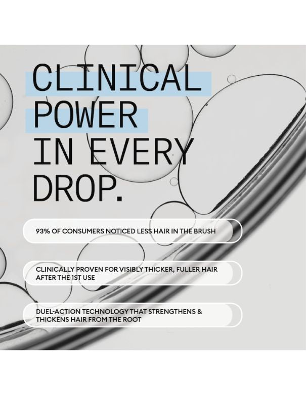 Nioxin Pro Clinical's Hair Fall Defense is a leave-on scalp treatment for thinning hair. Designed for daily use, it's clinically proven to increase hair anchorage with visible results in only 8 weeks* while thickening hair from the very first use. It's formulated with innovative ingredients including SANDALORE, caffeine, lauric acid, and niacinamide. Together they work to stimulate and nourish the hair follicles to prolong the growth cycle and improve hair resistance for fuller-looking hair. This effective leave-on scalp treatment is the first time SANDALORE has been leveraged to stimulate hair follicles and improve hair anchorage.